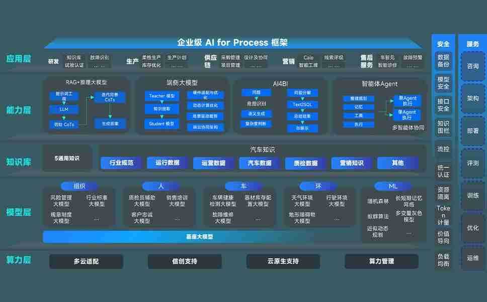 J9国际站备用问学智车解决方案是一套基于AI技术的汽车行业智能化系统,,覆盖从底层算力到顶层AI应用的全栈方案。。。。方案由算力层、、、、模型层和应用层组成:算力层,,方案支持多种一体机配置,,,,具备云端灵活部署、、多云适配以及动态优化计算资源的能力;模型层,,,J9国际站备用问学平台版提供了企业级AI应用一站式构建与管理平台,,,支持基于后训练强化技术的汽车企业专属模型的训练、、、评测和运营;应用层,,J9国际站备用问学DeepSeek版提供包括超级员工、、智能招采、、智能营销、、智能客服、、、AI for BI等一系列解决方案,,可助力汽车行业实现数字化转型,,,,让管理更智能、、响应更敏捷。。。。